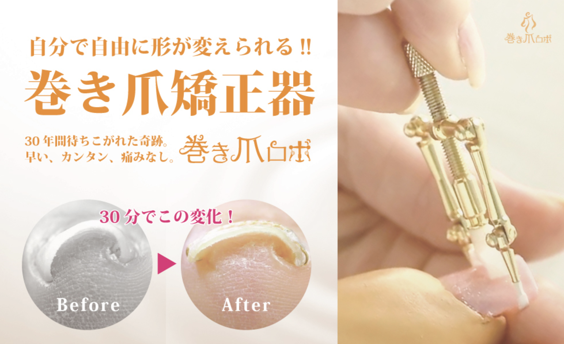 しかも瞬時に効果を実感することができる、巻き爪に苦しむすべての人が長年待ち望んでいた、まさに奇跡の商品。